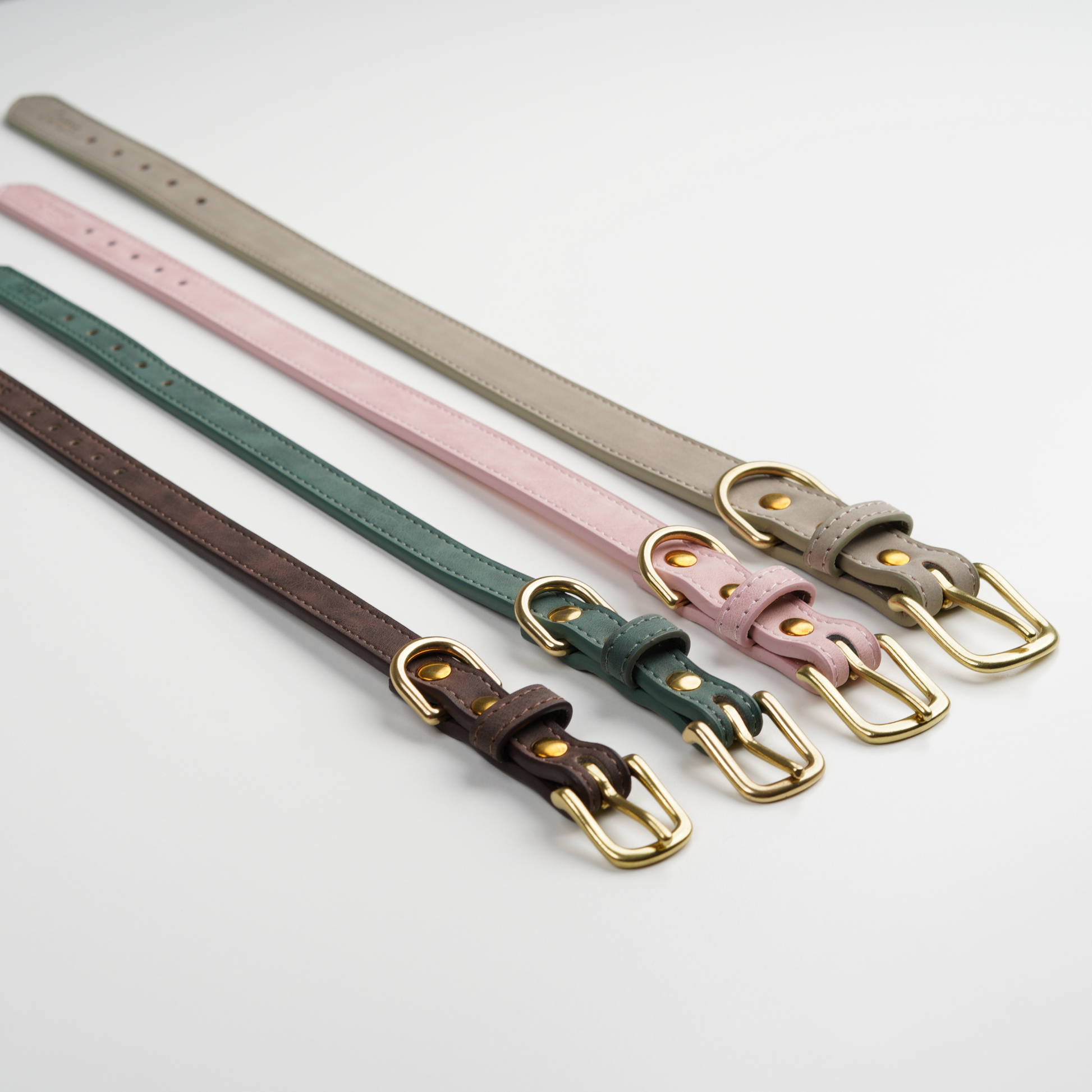 Grace halsbåndet er udstyret med tidsløst messing på spænderne, der giver et sofistikeret touch til det samlede design. Med valget mellem fire forskellige farver kan du finde det halsbånd, der passer perfekt til din hunds personlighed og stil.