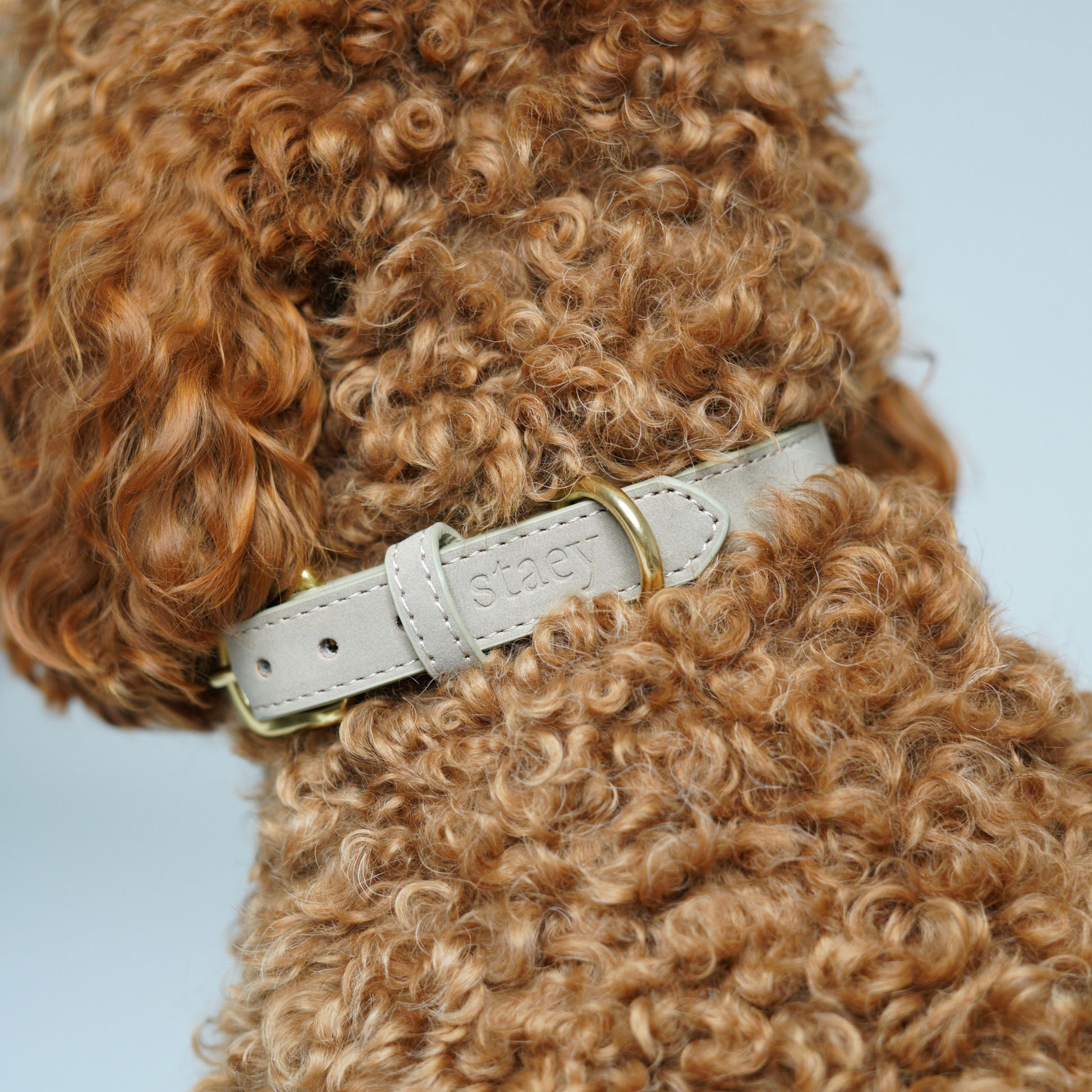 Dette elegante håndsyet Grace halsbånd fra Staey er fremstillet af højkvalitets nubuk læder, der ikke kun føles blødt og luksuriøst mod din hunds pels, men også sikrer en langvarig holdbarhed.