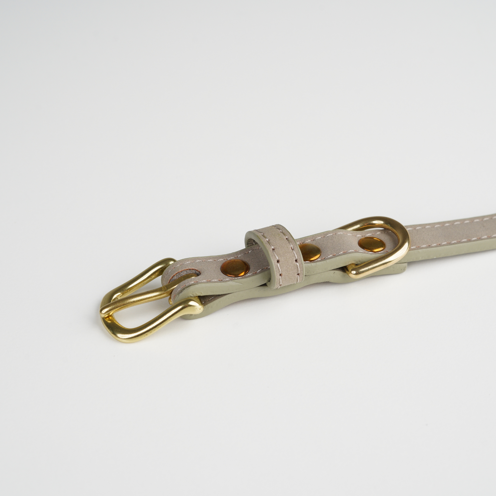 Grace halsbåndet er udstyret med tidsløst messing på spænderne, der giver et sofistikeret touch til det samlede design. Med valget mellem fire forskellige farver kan du finde det halsbånd, der passer perfekt til din hunds personlighed og stil.